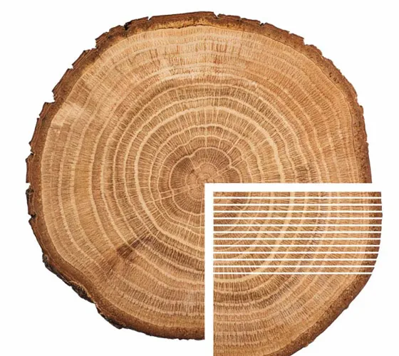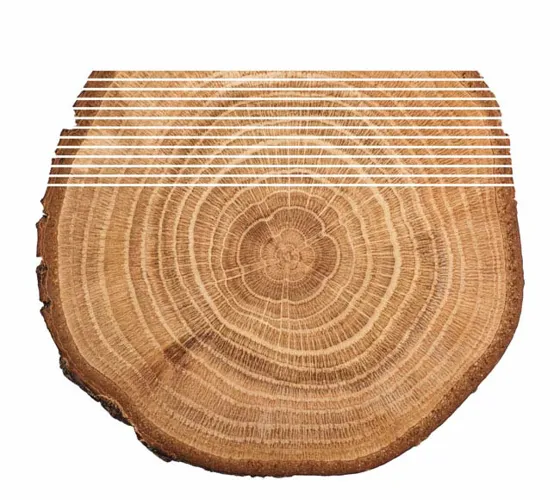 Vi har valgt at anvende egetræ, - en smuk egefinér med klar åretegning og struktur. Der er en naturlig varians fra træ til træ og afhængig af om finéren ligger tættere på kernen af stammen eller barken og hvor træet har groet. Træet trækker mineraler op fra jordbunden, der afsætter sig som en mørk bund i træets årestruktur, - såkaldte mineralstriber, der varierer afhængig af grosted. Den naturlige varians er en kvalitet og netop det, der adskiller et naturprodukt fra industrielle efterligninger som folie, laminat og melamin. Dette betyder også, at produkter der efterbestilles kan afvige i farven, men farveforskelle vil over tid mindskes med eksponering fra sollys.