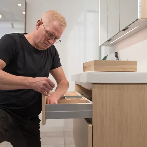 Skulle du ikke føle dig helt tryg ved selv at montere vores produkter, kan du altid kontakte en professionel håndværker og få hjælp. Mange VVS-installatører kender vores produkter og vil gerne hjælpe dig med at montere møblerne. Du kan finde din nærmeste forhandler her.