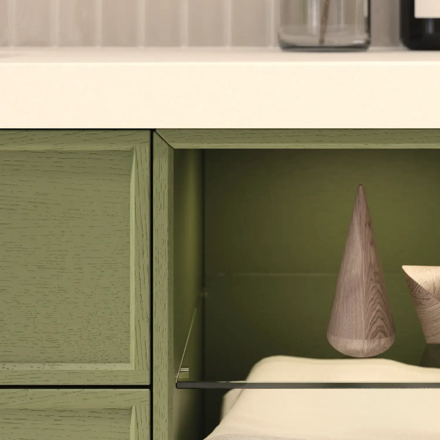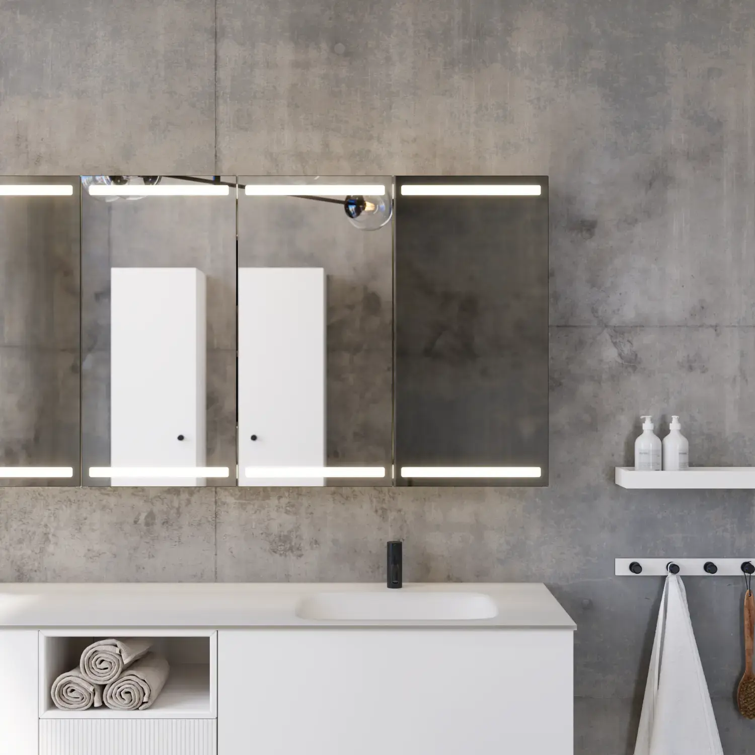 Når æstetik og funktion smelter sammen, opstår et rum i perfekt balance. Med Calidris kan du indrette hele badeværelset i ét sammenhængende udtryk – fra de elegante spejlskabe og åbne reoler til de svævende højskabe med lys under. De rene linjer, de taktile fronter og de gennemtænkte detaljer skaber en atmosfære af ro og eksklusivitet.