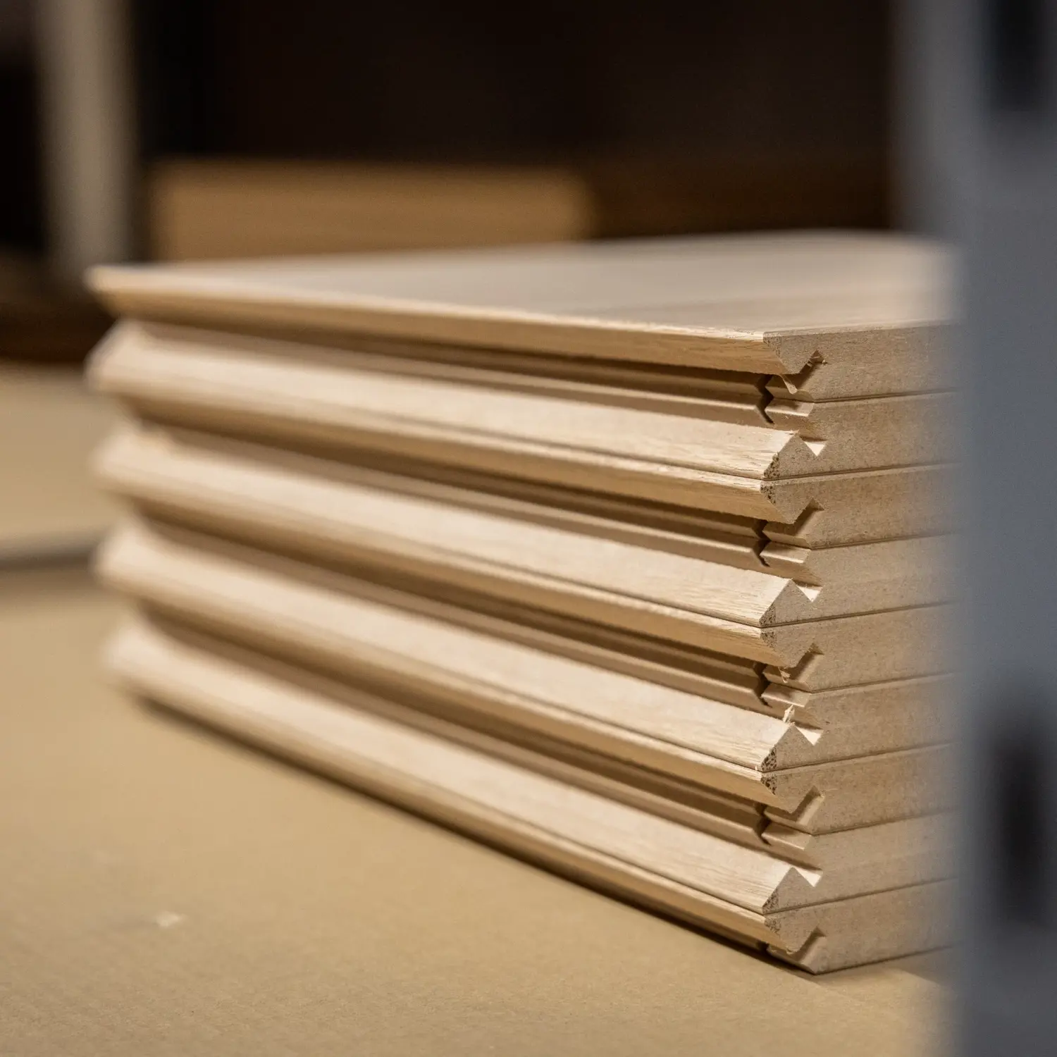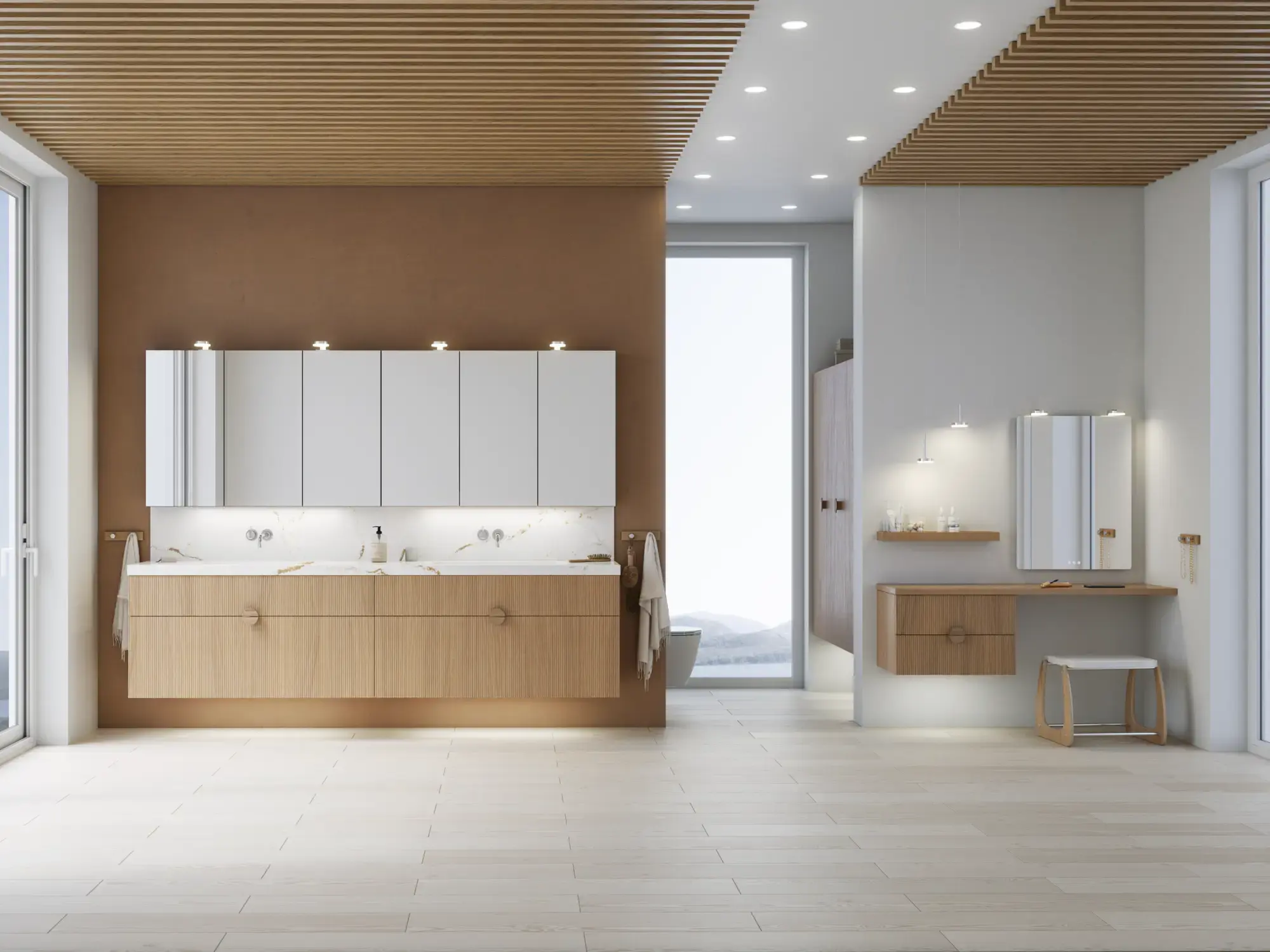 Med Calidris kan du vælge blandt 7 raffinerede træsorter og en fuldfarvet finér – alle med mulighed for både riller og ramme. Et håndværksmæssigt udtryk, der giver dit badeværelse varme, karakter og tidløs elegance.