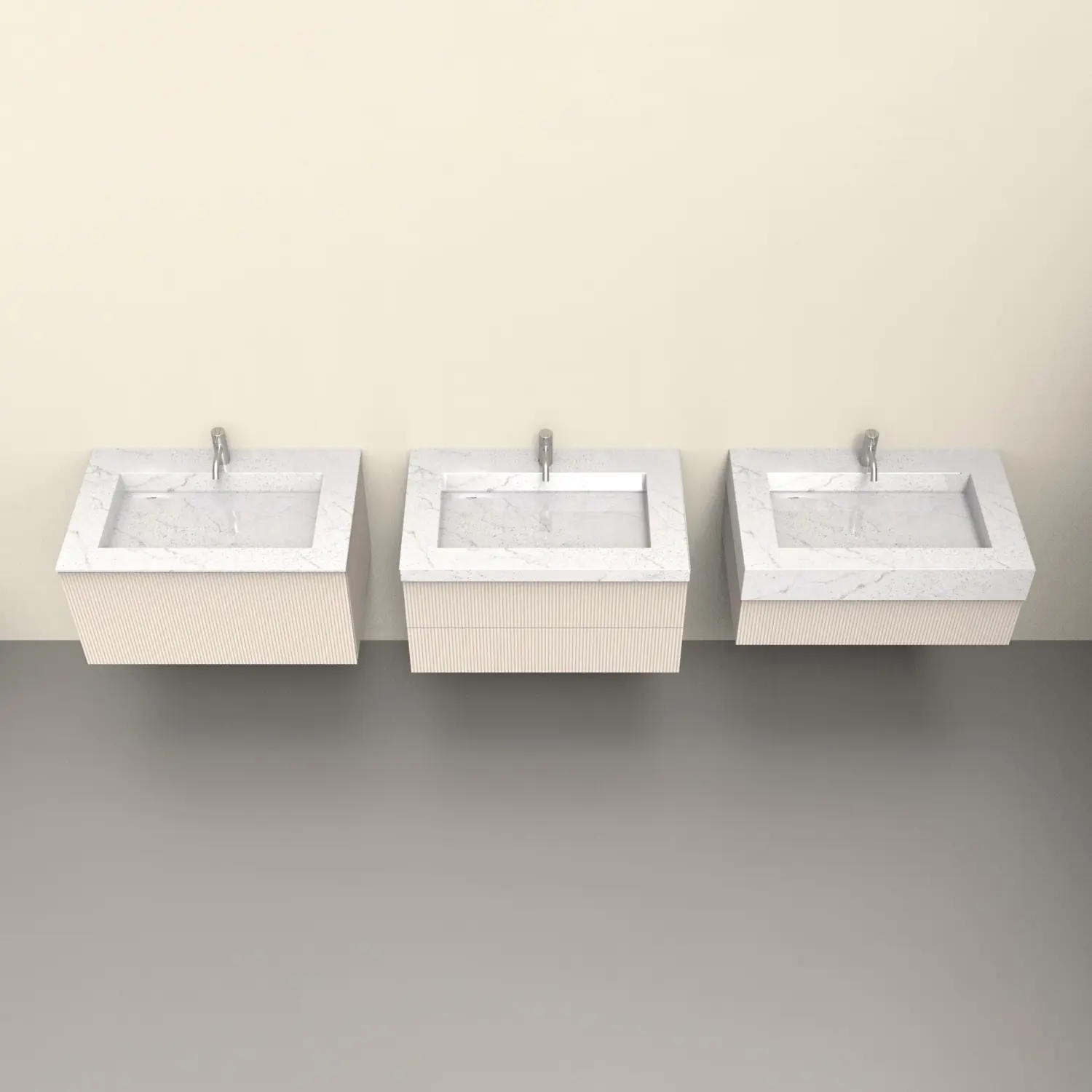 Herunder kan du få et overblik over Angular, Quadra og Unique håndvaskene til Calidris. Alle vaskene fås på mål op til 240 cm, så du kan få en skræddersyet vask, der passer perfekt til dit badeværelse.