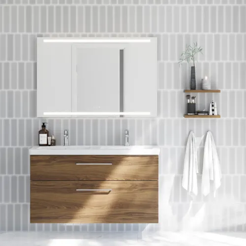 Hos Dansani tilbyder vi to udvalgte spejle, der er 160 cm brede, som begge er designet med smarte funktioner og et elegant udtryk. Uanset hvilket du vælger, får du indbygget lysstyring, så du kan justere lysintensiteten og farvetemperaturen præcis efter behov – fra skarpt arbejdslys om morgenen til en blødere og mere stemningsfuld belysning om aftenen.