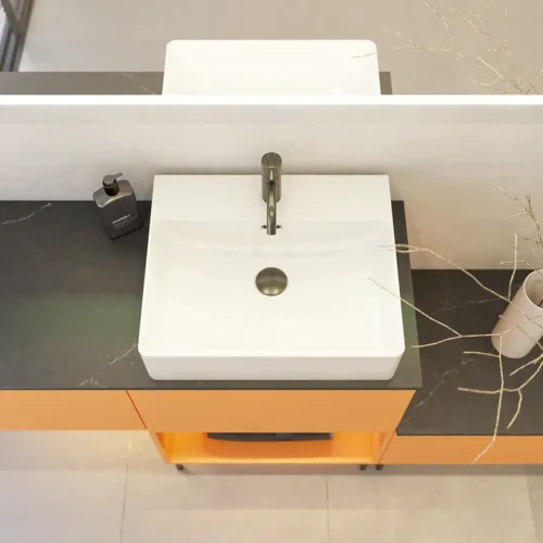 En firkantet, bordstående håndvask er perfekt til dig, der ønsker et tidsløst og minimalistisk badeværelse. Den rene symmetri skaber et skarpt og moderne look, som passer ind i det fleste indretninger. - 31