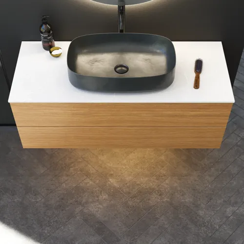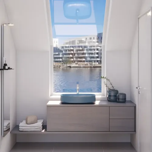 Skab harmoni i et mindre badeværelse ved at kombinere Ellipse håndvasken med en elegant bordplade. Udforsk et monokromt udtryk eller skab kontrast for et unikt look. Udnyt pladsen effektivt med en skræddersyet væg-til-væg løsning, der skaber en pladsbesparende og stilfuld atmosfære, hvor hvert element bidrager til følelsen af rummelighed og funktionalitet.